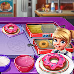 We hope you can keep your chef's hat on your head in this rush! Your objective int his game is to reach the target profit on each level before running out of time. The kitchen is about to get heated, and a culinary challenge is waiting for you. But don't worry, because, with the simple controls of this game, you can prepare donuts in no time! You can play the game with your mouse, so click on the play button on the main menu to start. There are many levels in the game and you unlock them one by one as you play. First, place a plate on the counter and then click on a donut to start frying it. Keep an eye on the timer, as you wouldn't want to burn it! When ready, click on the donut again and then pick a topping according to your customers' order. Click on the donut to serve it. Have fun!