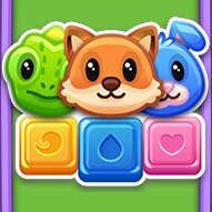 Your mission is to click on the groups of blocks with more than three same-colored boxes together. Starting from the top would be the best strategy not to let them pile in different colors. The screen will keep sliding non-stop as long as you keep up with the pace and avoid the boxes touching the ceiling. The game merges the extra boxes in the middle, making everything a little easier for you. You can see your level and points above the puzzle screen. Make bigger combos and break bonus boxes to multiply your score. You can experiment with the boost tiles and freeze the time, trigger a small explosion, destroy a whole row, or paint an area in the same color. The game ends when you align three of the same animal and sign them. Good luck!